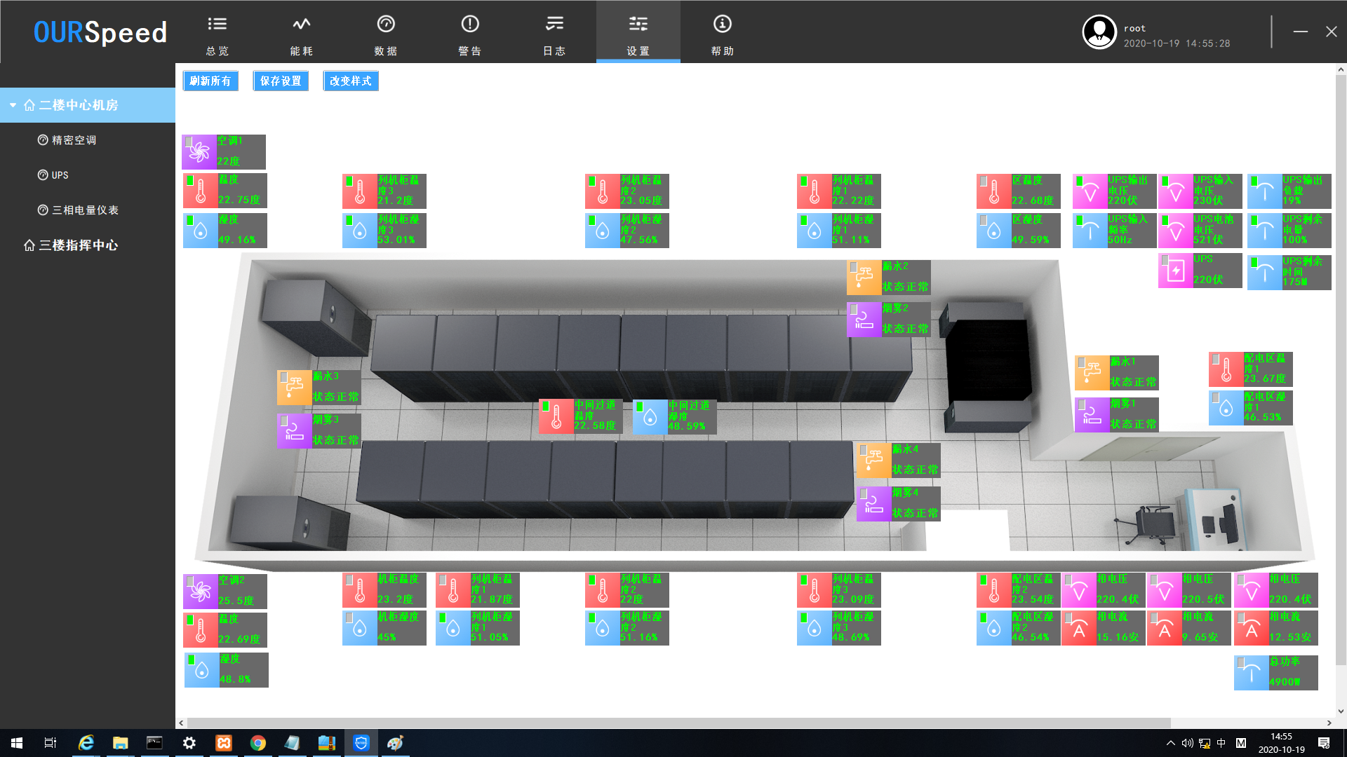 動力環境監控係統的多屏幕展示功能可以將用戶關注的某些設備的重要信息頁麵進行獨立展示,支持在單個屏幕上顯示多個頁麵展示窗口或者在多個屏幕上顯示一個大窗口,且窗口的大小、窗口顯示模式、窗口的內容、屏幕中的顯示位置均可以進行自定義設置,展示方式靈活多變、操作簡單、獨立、快捷。